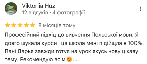 Приятная и дружественная атмосфера на занятиях позволяет вам расслабиться и естественным образом улучшать свой уровень польского языка.